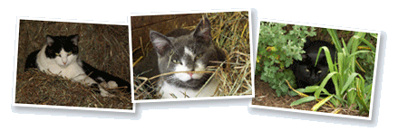 (left to right) Barn cats can be so spoiled! Tattoo,
