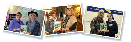 (left to right) Author Book Signings and Special Presentations are fun! With Judy Novinger, Owner, Baby Bug & Me, children’s clothing store, Lemoyne, PA; Cheryl Gras, Coldwater Creek women’s clothing store, Harrisburg, PA; Sister Eileen, St. Joan of Arc School, celebrating her 25 years as School Principal, this is my elementary school Alma Mater |