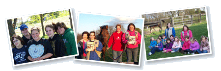 (left to right) Girl Scout Troop 1105, earned their Silver Award by clearing out the brush in part of the woods at my farm, they worked very hard and did a great job, they marked their work in the farm woods with a Stepping Stone with their names on it, thanks to Girl Scouts, Brooke, Cara, Rebecca, Samantha and Kim, and their leaders (not pictured), Paula Shaeffer and Kris Landvater; Girls Scouts Brooke and Rebecca, and leaders Paula and Kris, return to the farm to have their photo taken with Shiloh and my book; Brooke and Rebecca host a Daisy Troop at my farm, showing them and telling them about the work they did to earn their Silver Award |